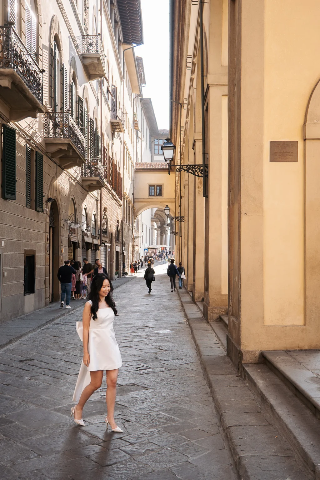 Warm tones, historic streets, and a slightly quieter atmosphere compared to Florence. Ideal for slower, more intimate sessions.