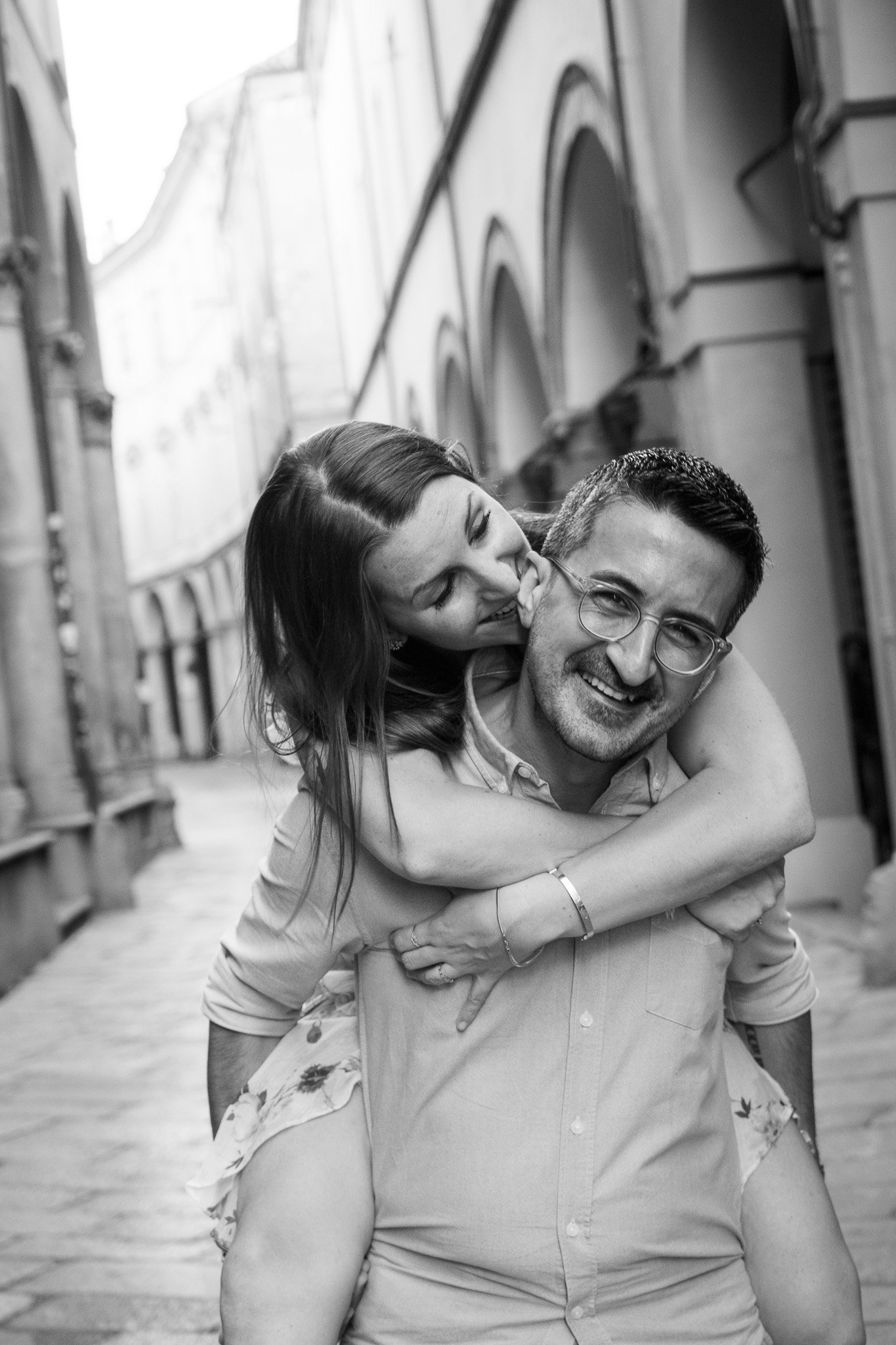 Servizio fotografico di coppia giocoso a Bologna