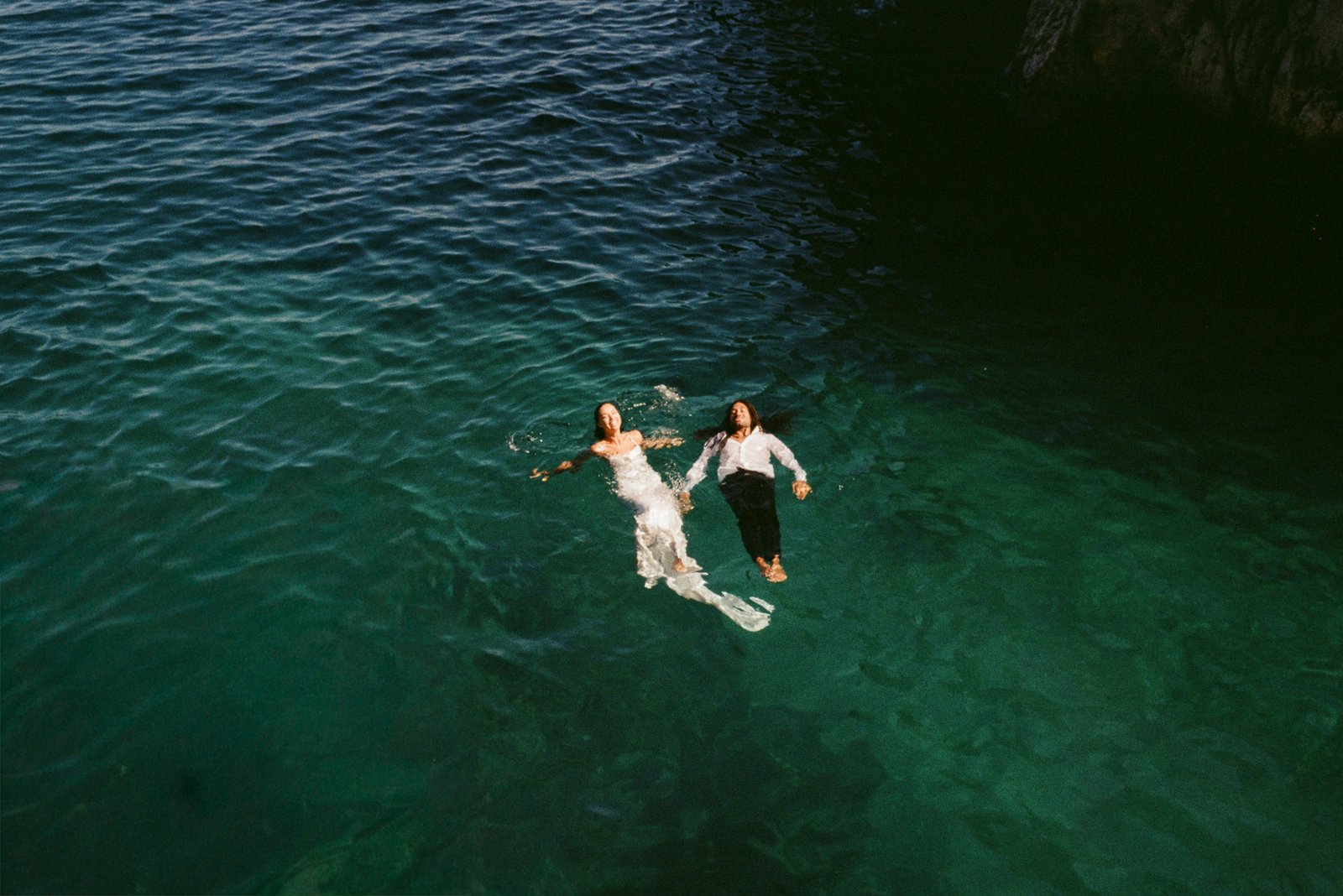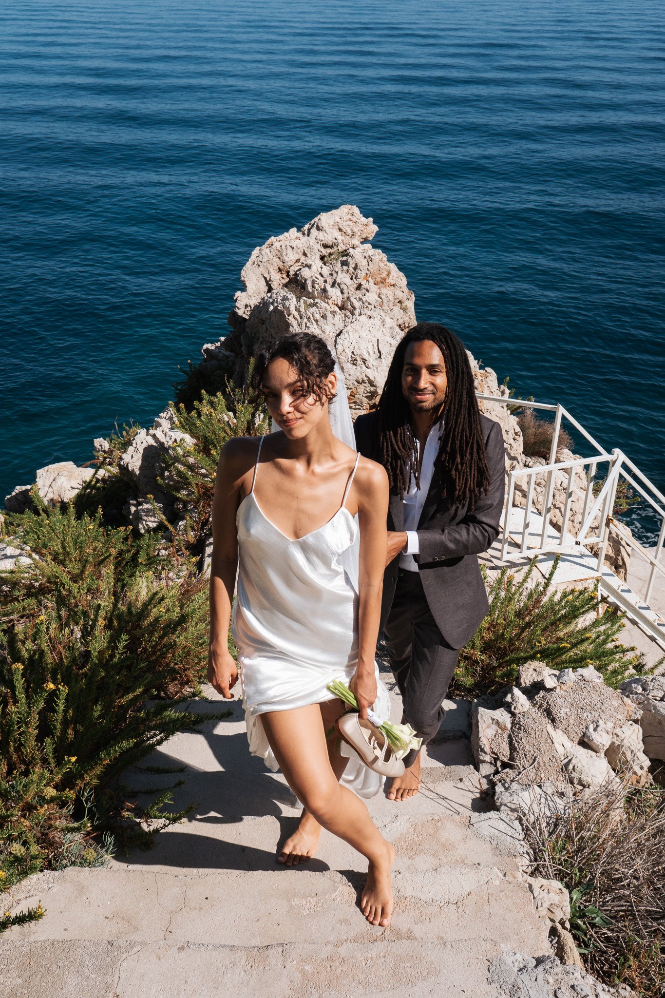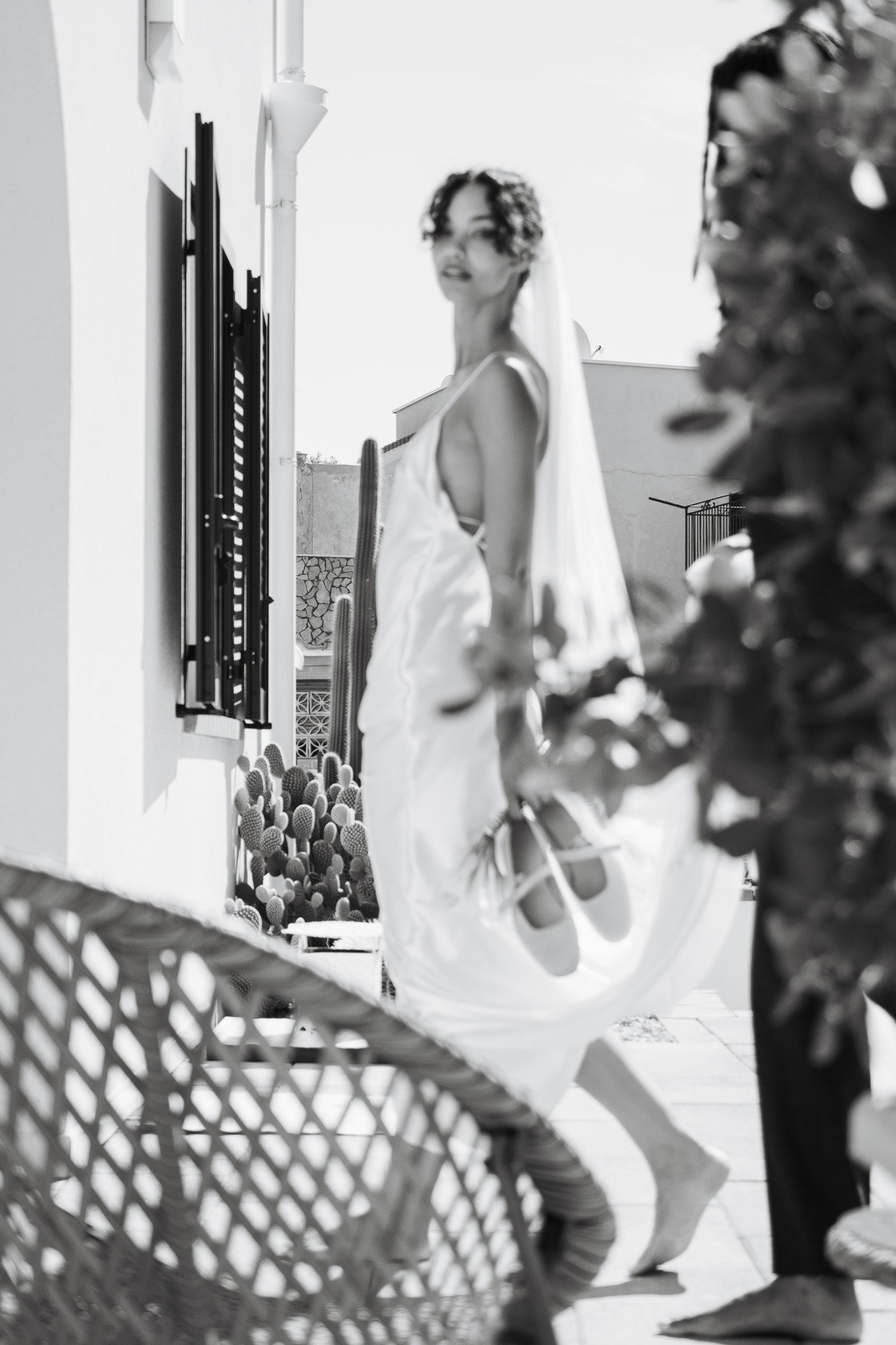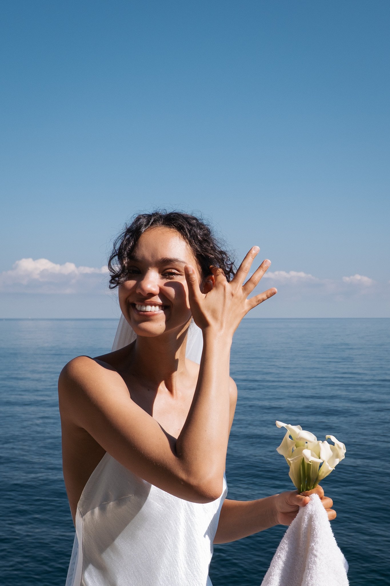 La cerimonia a Sant’Elia si è svolta in riva al mare, circondati dagli amici più cari. Non c’era nessun allestimento scenografico o decorazione esagerata, solo il suono delle onde, il calore del sole e le risate delle persone che amano. Rae e Matthew mi hanno ricordato la bellezza delle cose semplici, anche quando si hanno i mezzi e il tempo per renderle lussuose, perfette e “con tutti i crismi”. Hanno scelto il calore invece dello sfarzo, la sincerità invece della perfezione.
