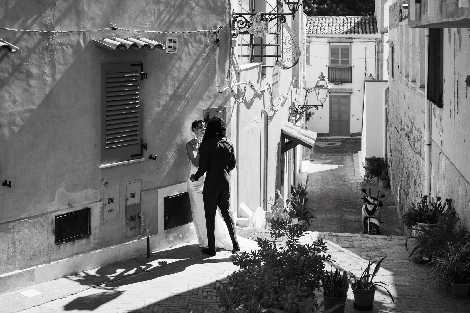 Rae, che in realtà si chiama anche Désirée, mi aveva contattato alcuni mesi prima, e mi fa ancora sorridere ricordare che ero a Noto, un’altra splendida cittadina siciliana, per fotografare una coppia quando il suo messaggio è arrivato. Due luoghi diversi sulla stessa isola, entrambi portatori dell’essenza della Sicilia: la sua luce, la sua storia e il suo fascino silenzioso. Dai vicoli barocchi ai paesini di pescatori, l’isola trova sempre un modo per intrecciare le storie.
