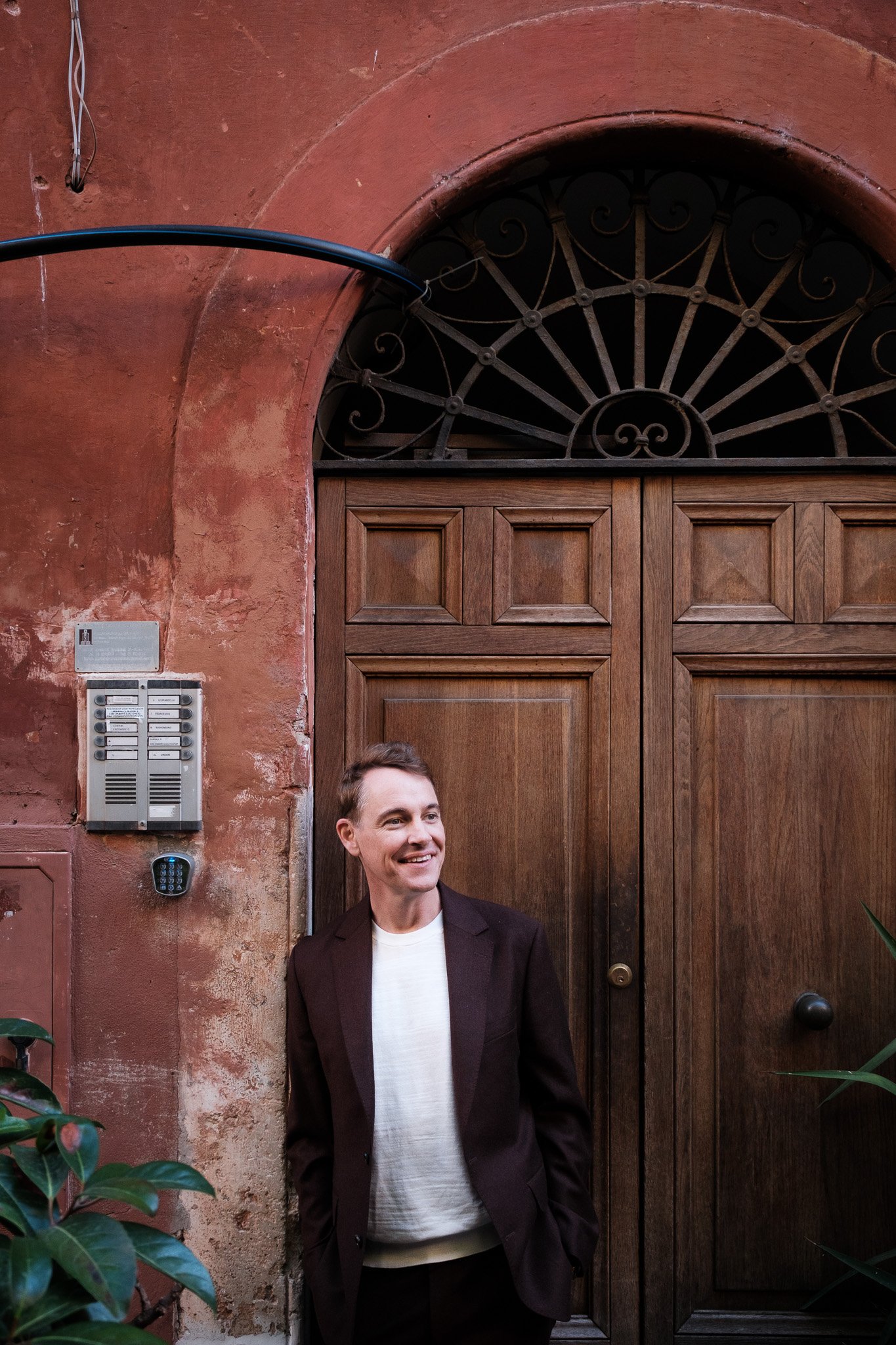 Abbiamo iniziato la mattina presto a Ponte Sisto, con i primi scatti di riscaldamento mentre il sole saliva sopra il Tevere. Le strade erano ancora vuote, l’aria frizzante e la luce sopra il ponte aveva un’atmosfera dolce e cinematografica. Da lì ci siamo incamminati verso Trastevere e ci siamo fermati al Bar del Cinque per un caffè. Davanti a due cappuccini abbiamo parlato della vita negli Stati Uniti e in Italia, di arte, politica e del piacere di prendersi il tempo necessario per respirare. Non sembrava un servizio fotografico. Sembrava una mattina serena trascorsa con amici.