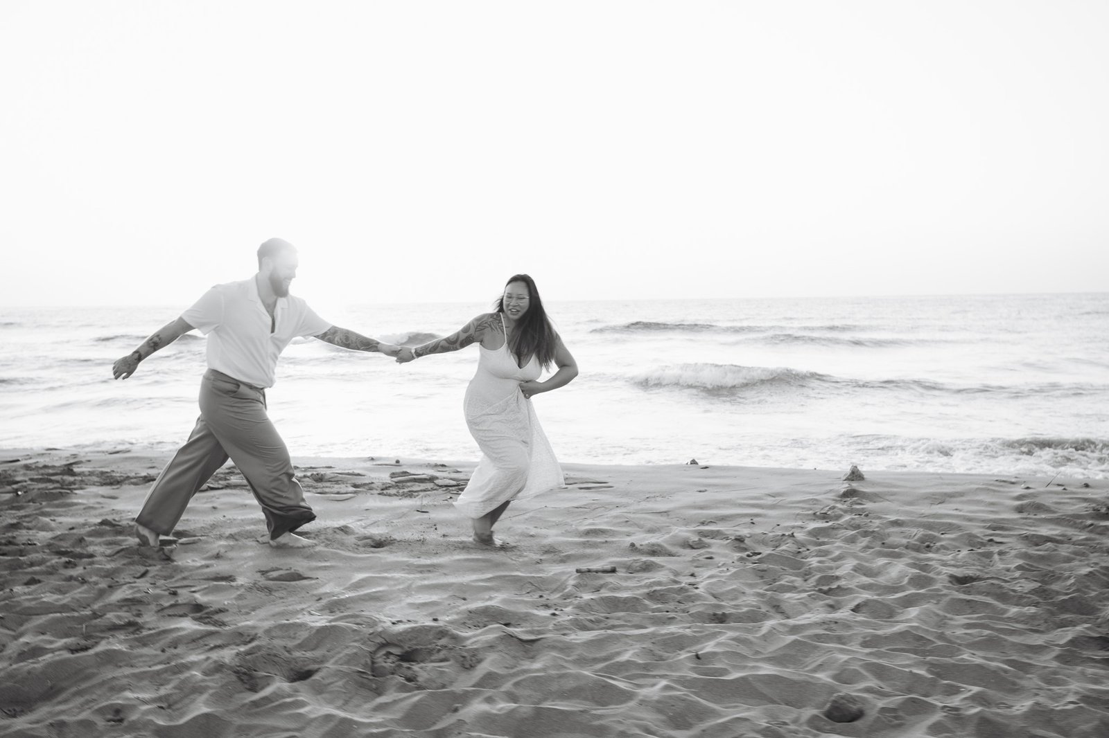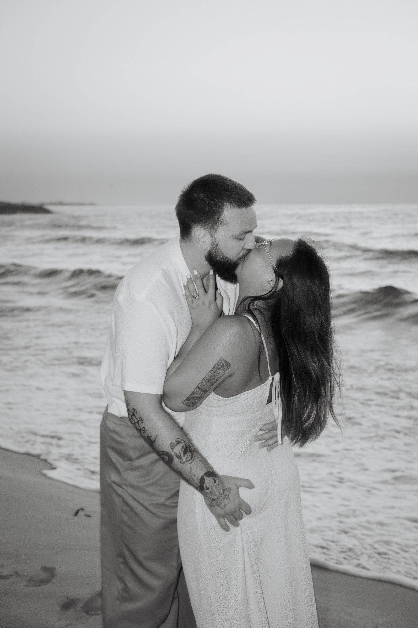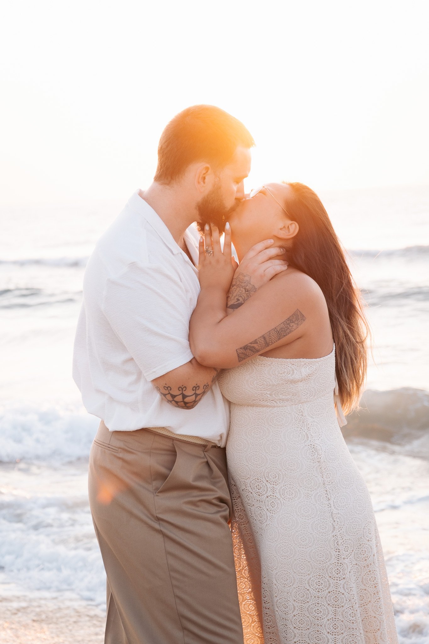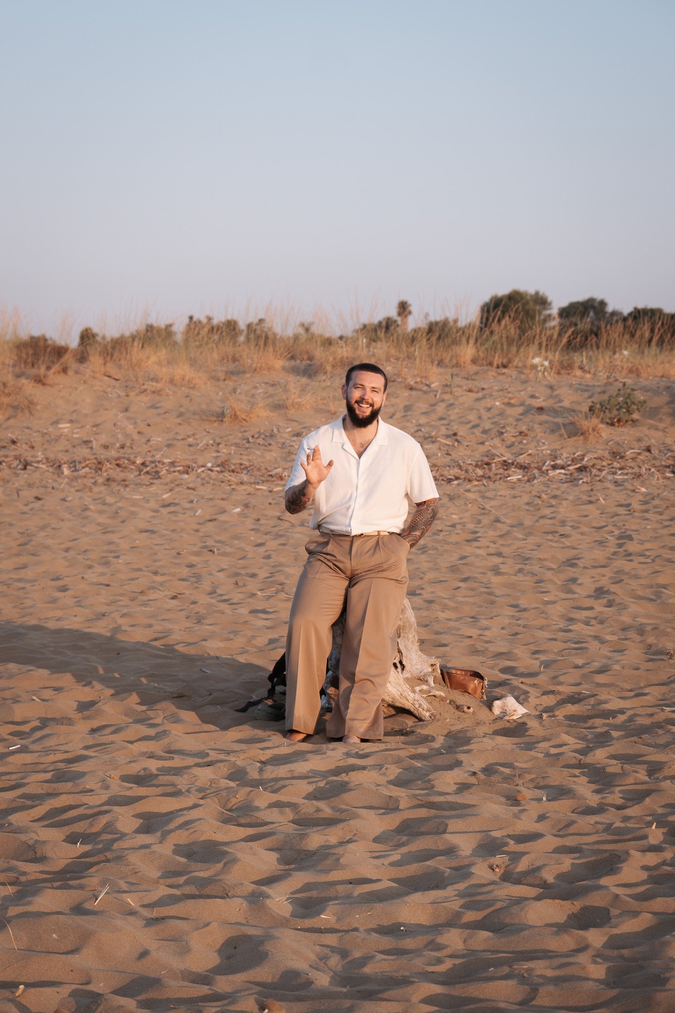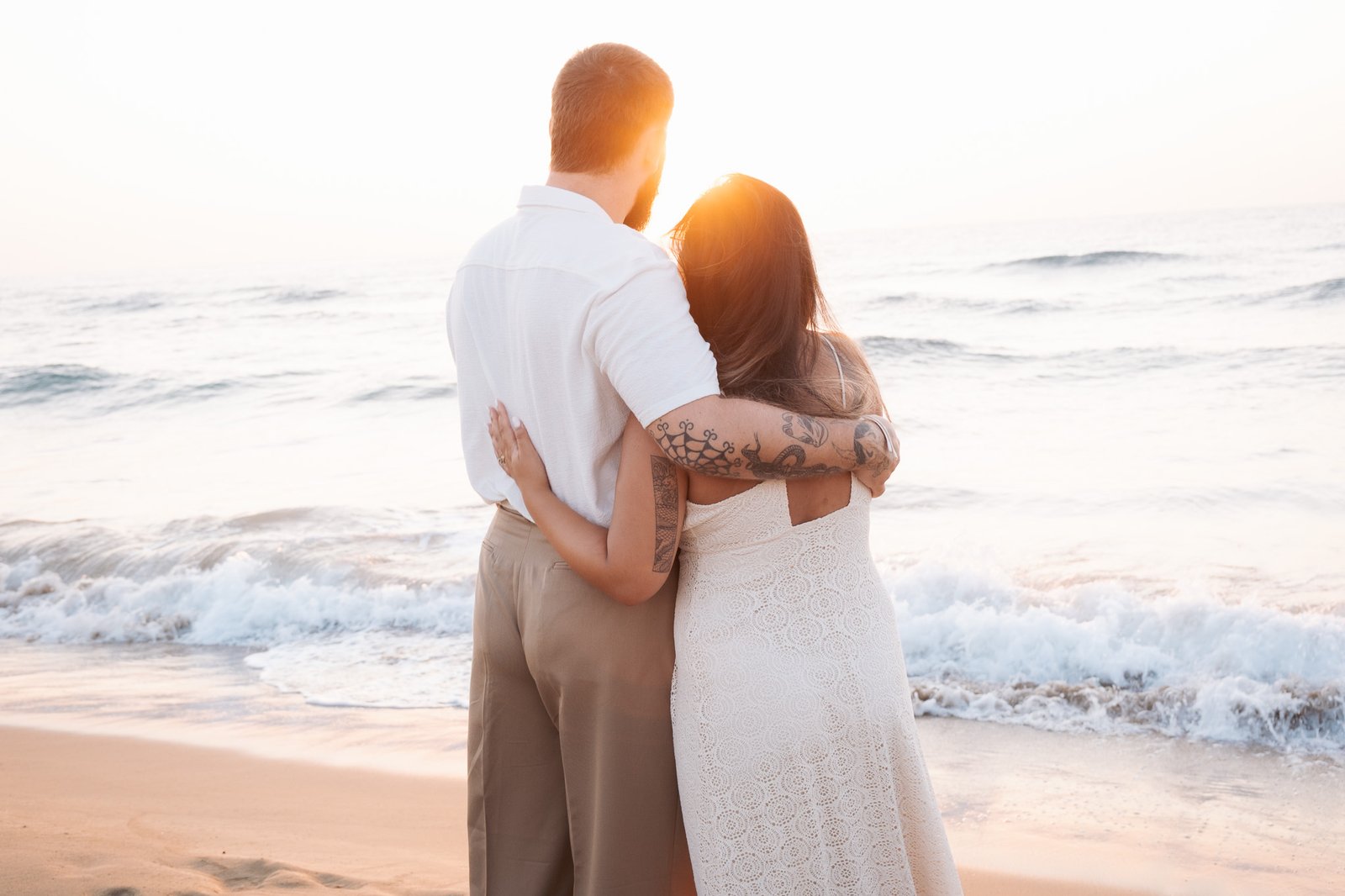 Da lì è stato puro piacere: un mix di romanticismo, risate e un po’ di sabbia che si appiccicava ai piedi. Sulla spiaggia, Gigi e Matthew si muovevano con una naturalezza incredibile. Un momento li vedevi camminare mano nella mano lungo la riva, lasciando dietro di sé una scia di impronte, quello dopo erano stretti l’uno all’altra, a scambiarsi baci mentre le onde arrivavano a riva. Ho adorato immortalare quei sorrisi spontanei e veri, come quando Gigi alzava lo sguardo verso Matthew con gli occhi che brillavano, o quando lui la tirava a sé e finivano entrambi a ridere senza riuscire a fermarsi.