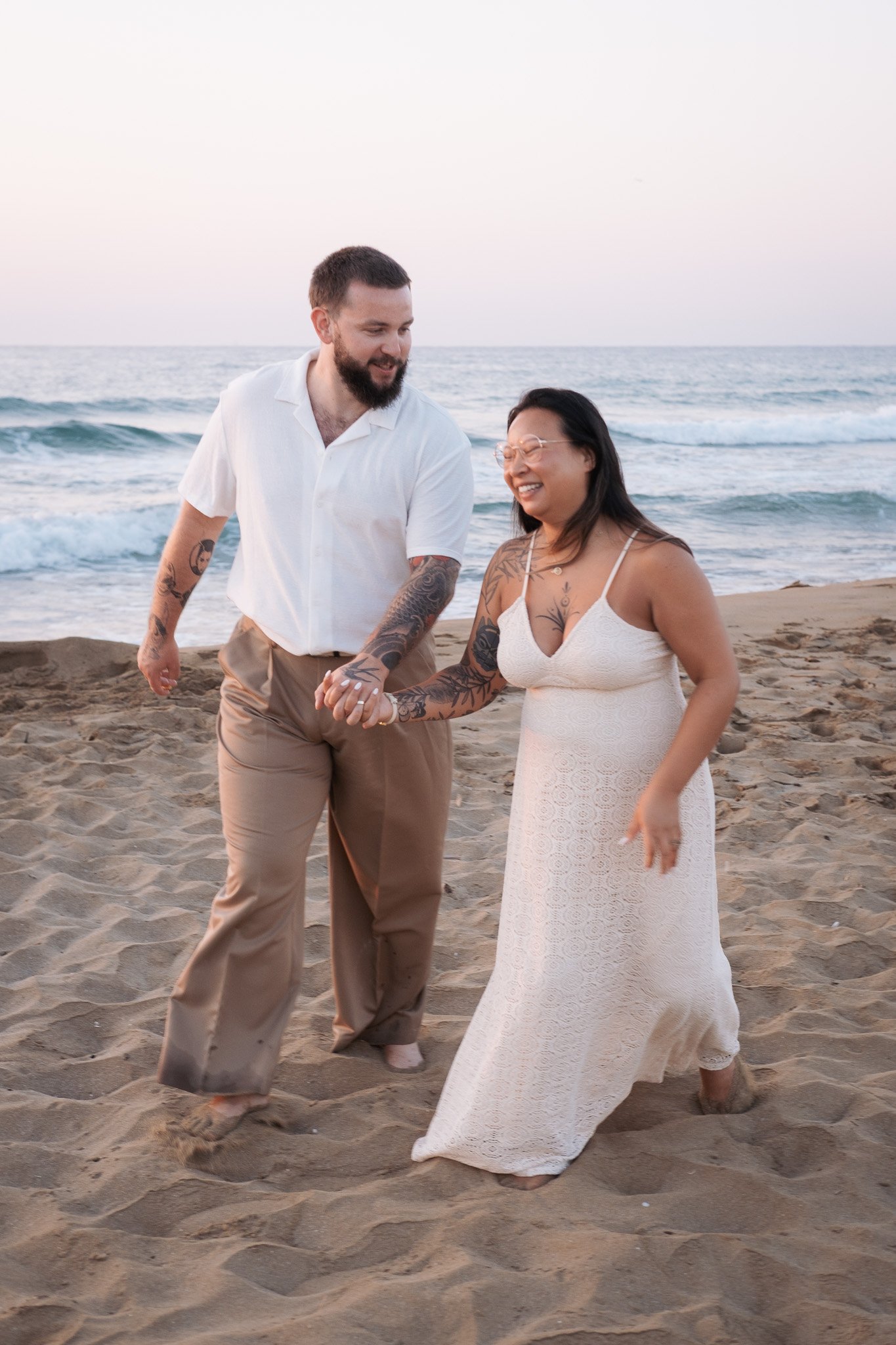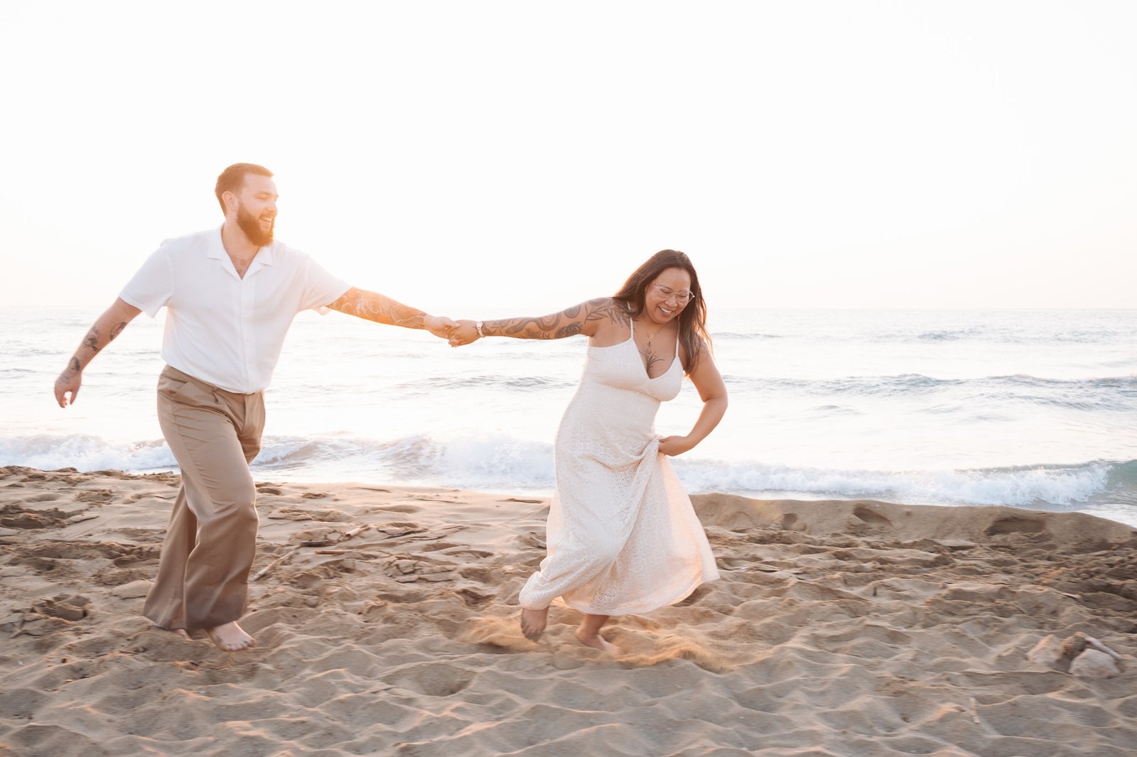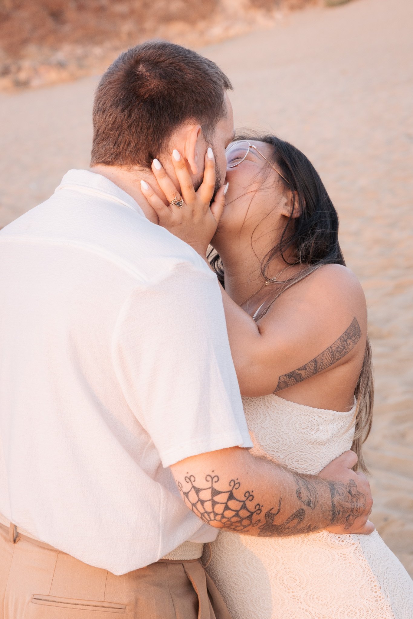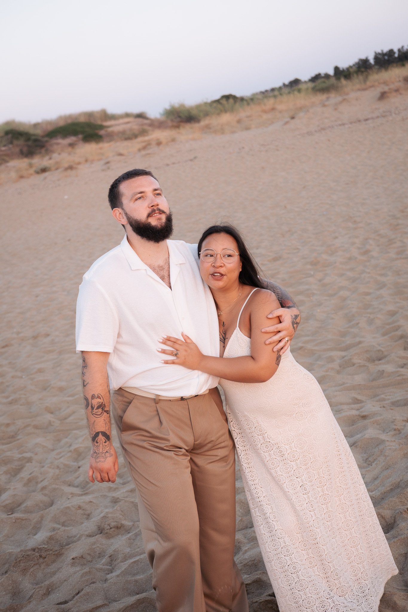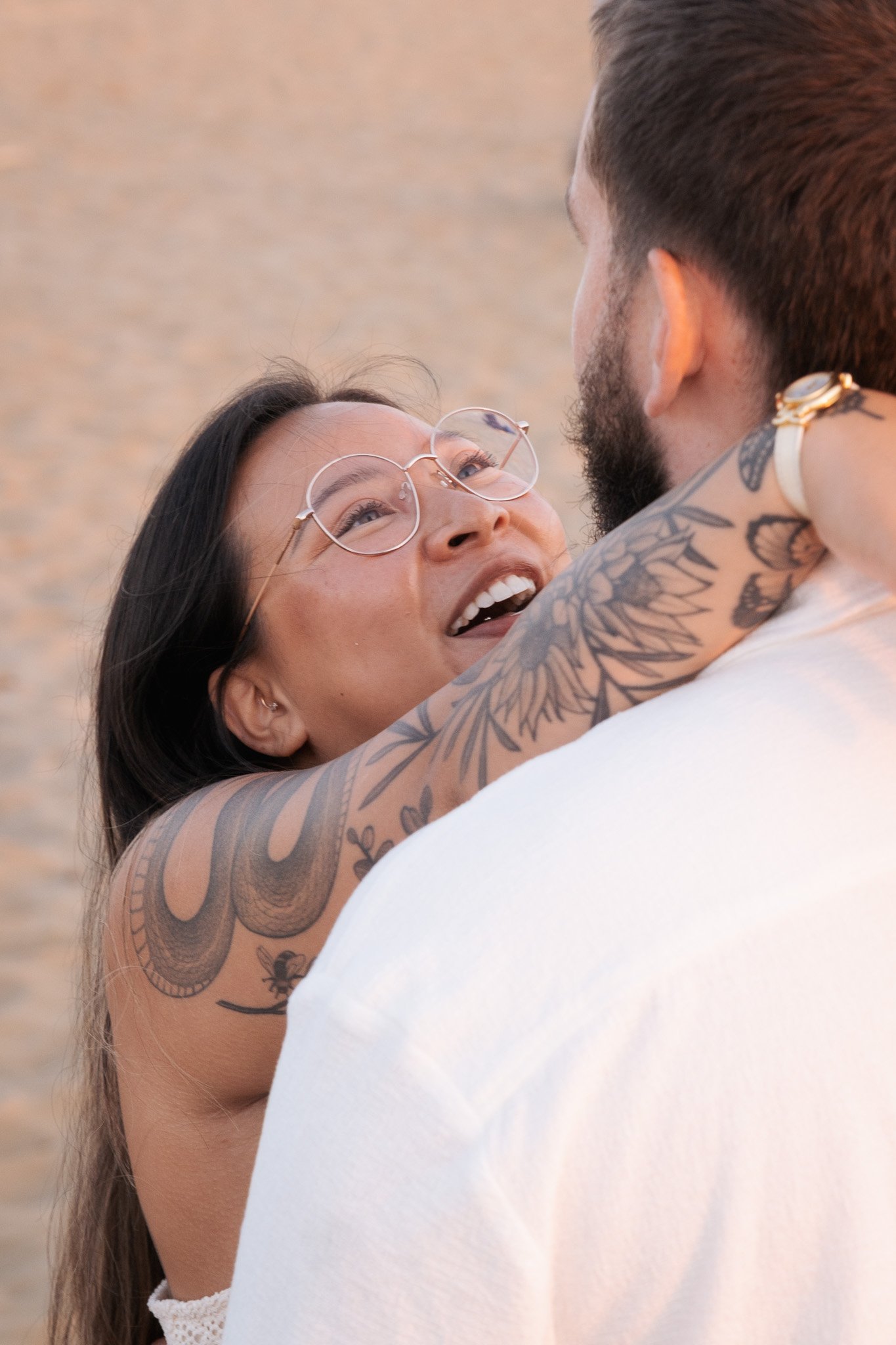 Da lì è stato puro piacere: un mix di romanticismo, risate e un po’ di sabbia che si appiccicava ai piedi. Sulla spiaggia, Gigi e Matthew si muovevano con una naturalezza incredibile. Un momento li vedevi camminare mano nella mano lungo la riva, lasciando dietro di sé una scia di impronte, quello dopo erano stretti l’uno all’altra, a scambiarsi baci mentre le onde arrivavano a riva. Ho adorato immortalare quei sorrisi spontanei e veri, come quando Gigi alzava lo sguardo verso Matthew con gli occhi che brillavano, o quando lui la tirava a sé e finivano entrambi a ridere senza riuscire a fermarsi.