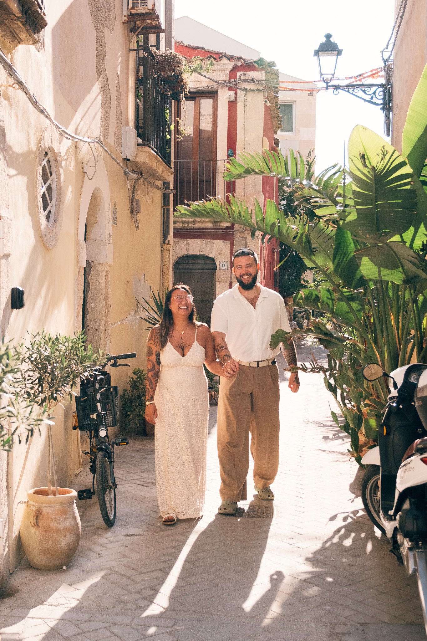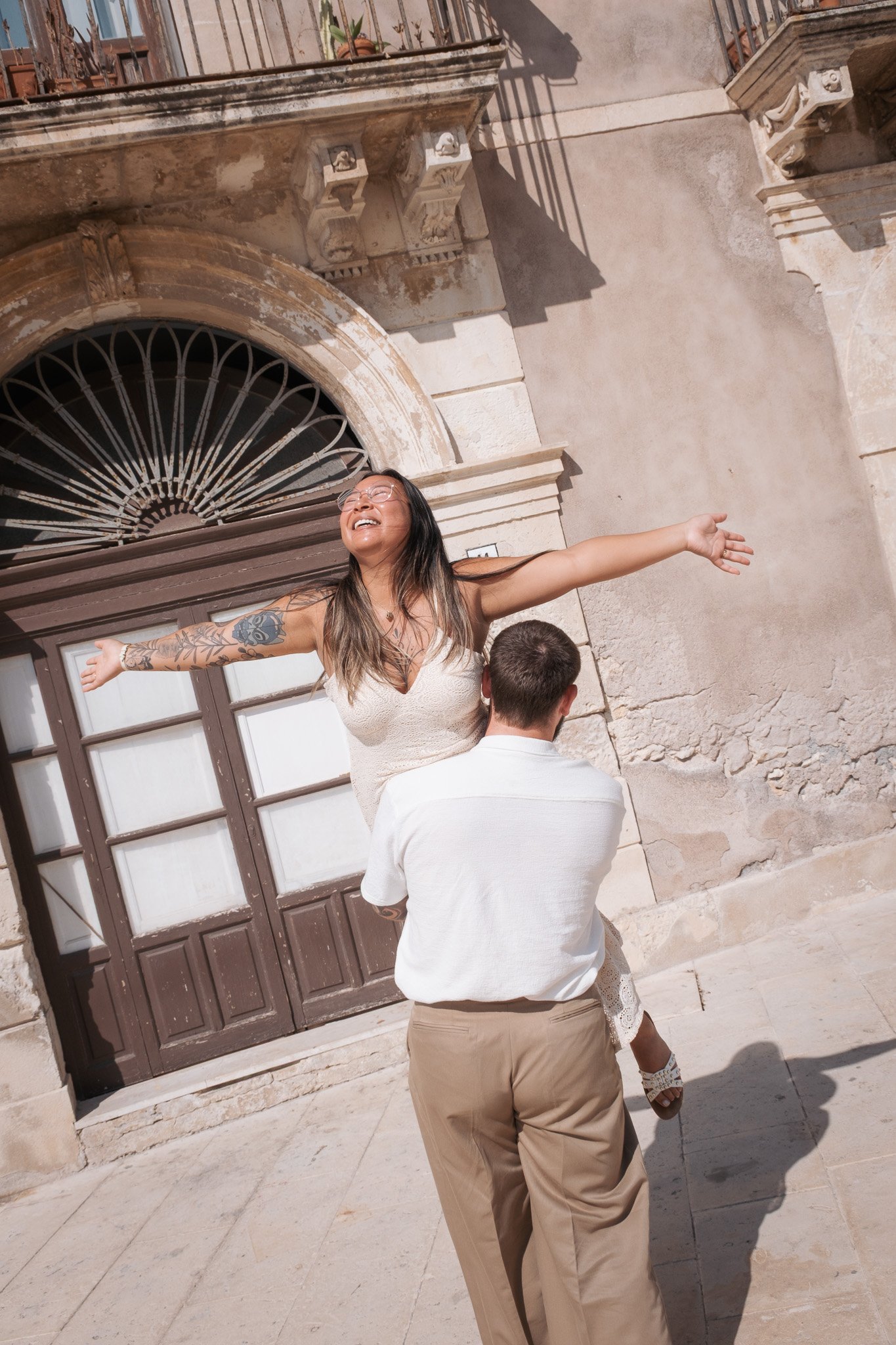 Servizio Fotografico di Coppia all’alba in Sicilia: Gigi e Matthew tra Siracusa e Noto