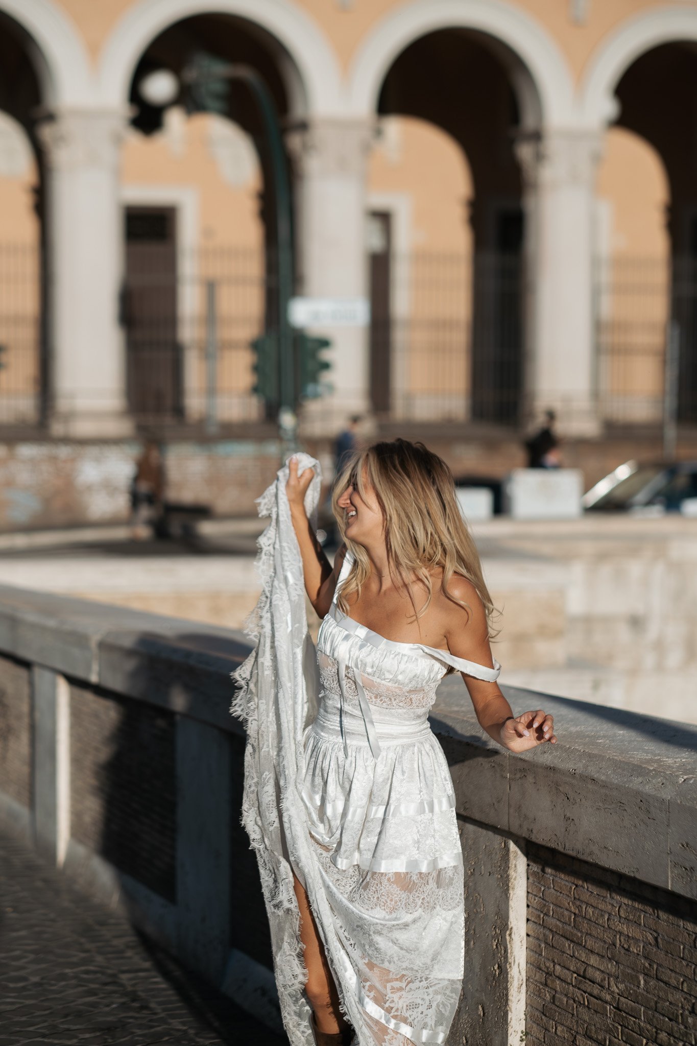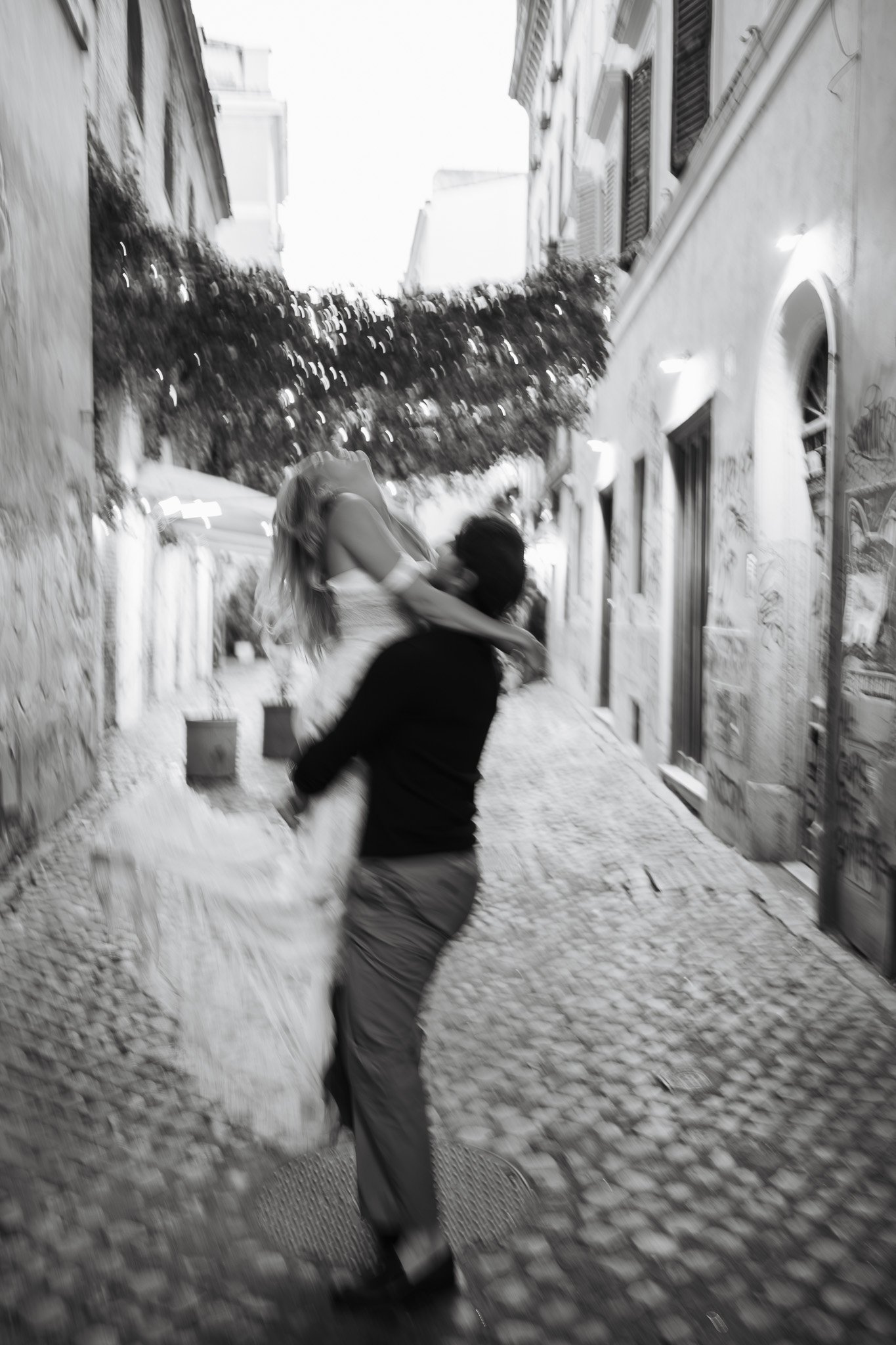 Una cosa che ho imparato come fotografo prematrimoniale a Roma e in Italia è che le foto più belle nascono quando le persone si dimenticano della macchina fotografica. Jessica, un po’ alticcia e con il sorriso più grande di sempre, è diventata ancora più espressiva. Così ho giocato con il movimento e con una messa a fuoco più morbida, cercando di raccontare il suo stato d’animo in quel momento.