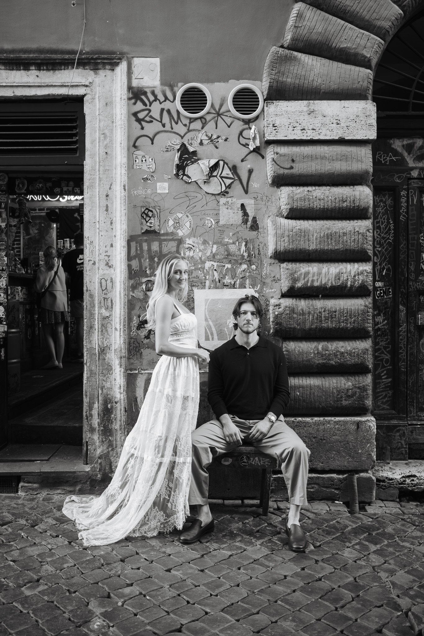 Abbiamo iniziato il pomeriggio nei pressi di Ponte Sisto, uno dei luoghi più suggestivi della città, con la luce calda di Roma che accarezzava i sampietrini. Le strade erano piene di vita, ma Jessica e Matthew sembravano vivere in un piccolo mondo tutto loro.