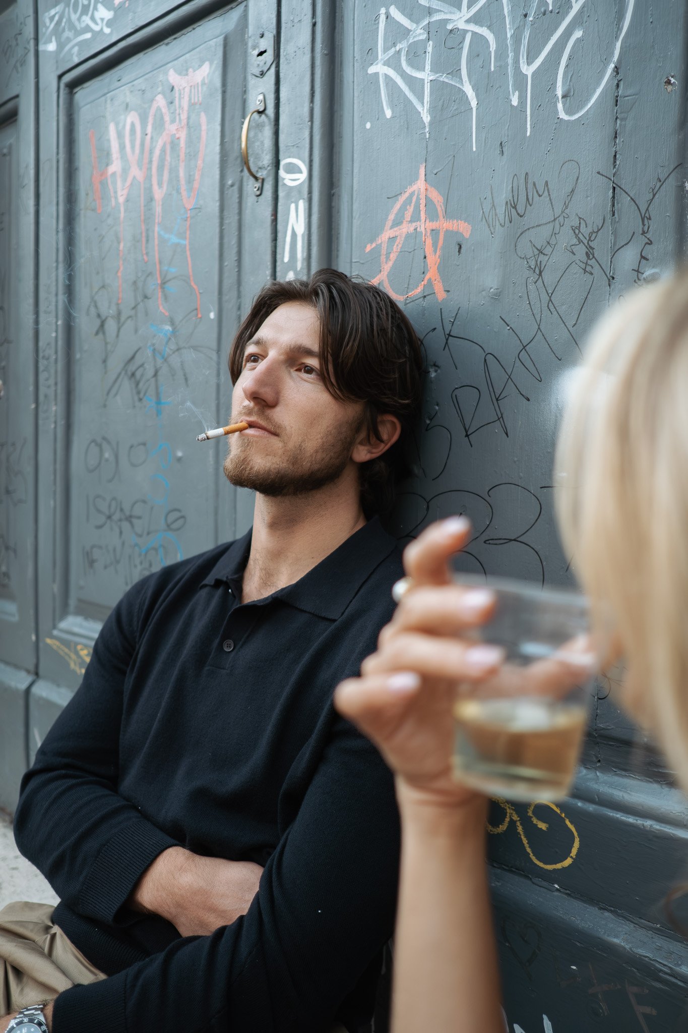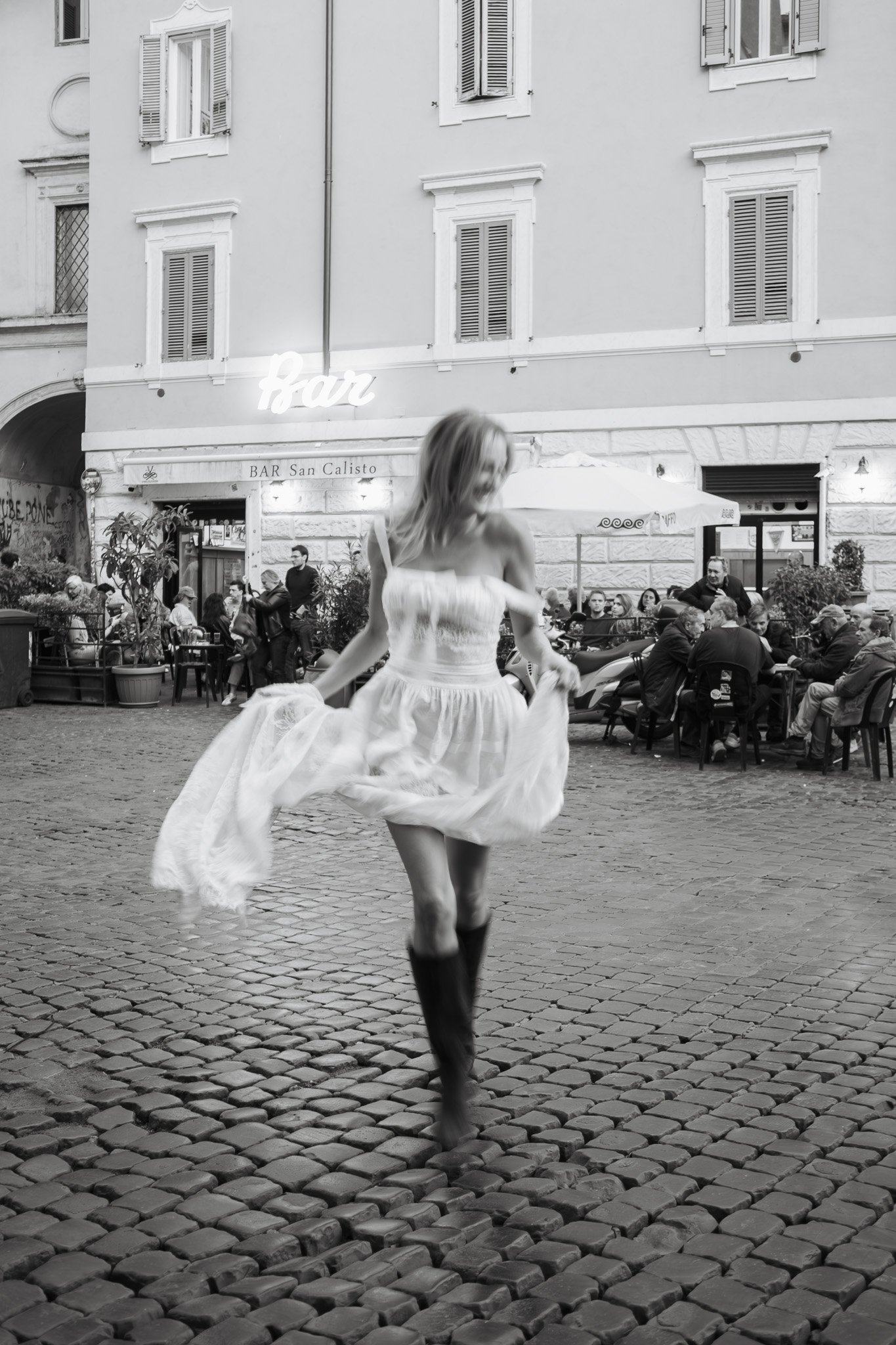 Dopo qualche ora a passeggiare e scattare tra i vicoli di Trastevere, abbiamo deciso di fermarci per una pausa. Ci siamo seduti a bere qualcosa in Piazza di San Calisto, uno dei miei angoli preferiti di Roma, vivace e autentico come pochi. Sigarette accese, bicchieri di plastica alzati, e ovviamente io ho continuato a scattare.