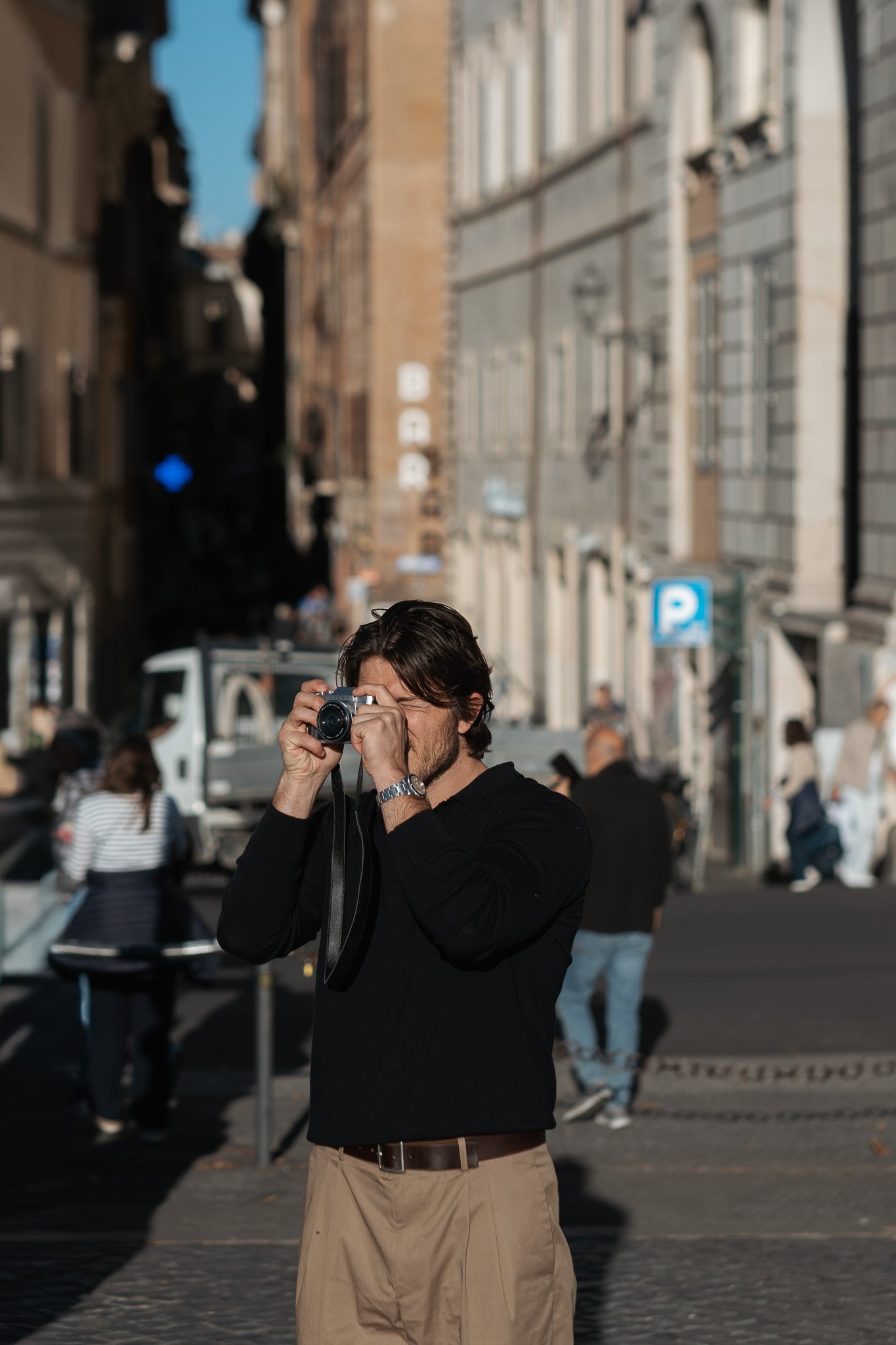 We started our afternoon around Ponte Sisto, one of the most scenic spots in the city, with the warm Roman light gliding over the cobblestones. The streets were alive, but somehow, Jessica and Matthew created their own little world within it.