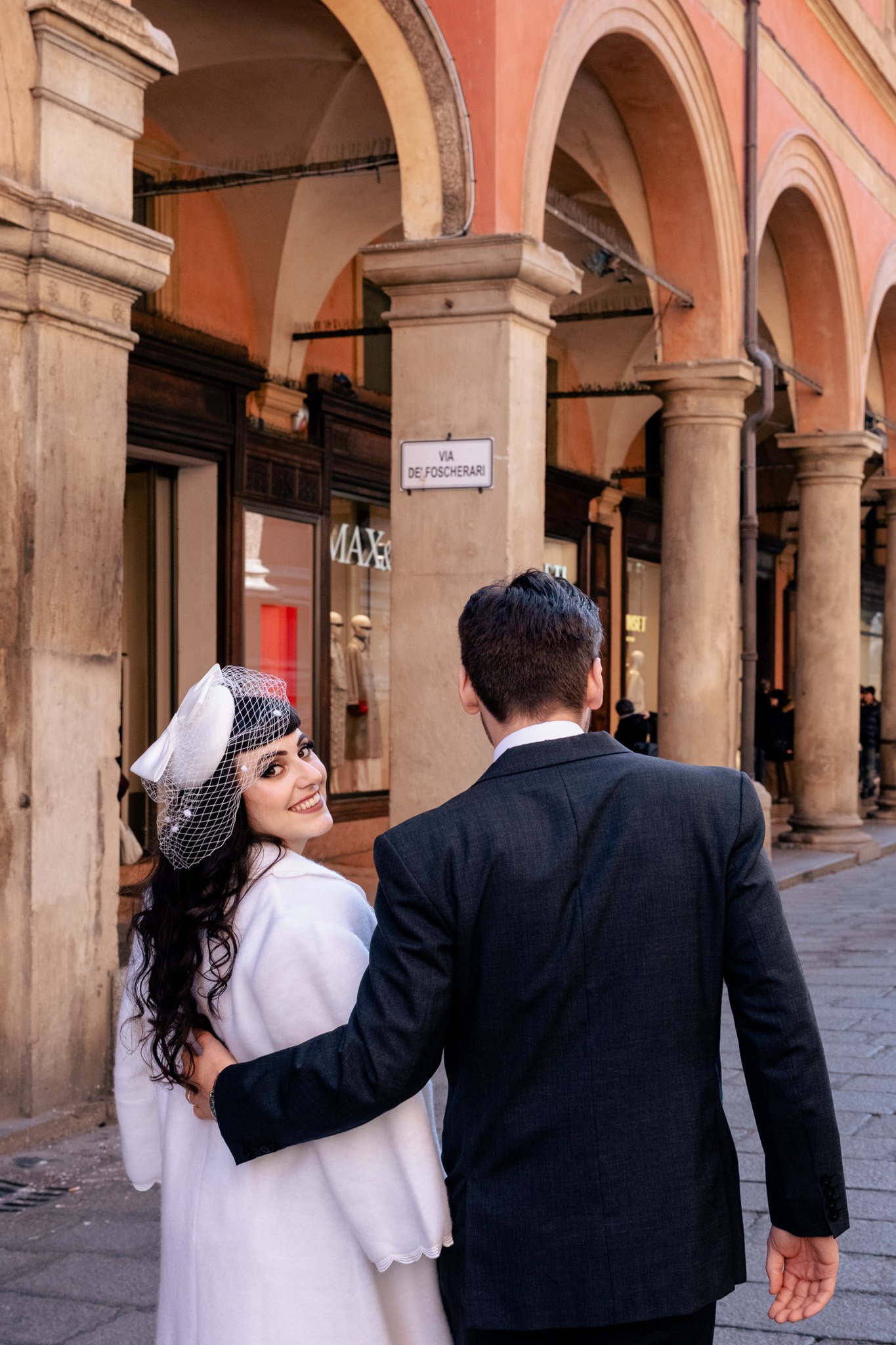 Even though it was December, we were lucky with the weather. Soft winter light filtered through the streets and inside the ceremony hall, creating a quiet and cinematic mood. Bologna in winter is slower, more intimate, and perfect for couples who want a meaningful experience without crowds.