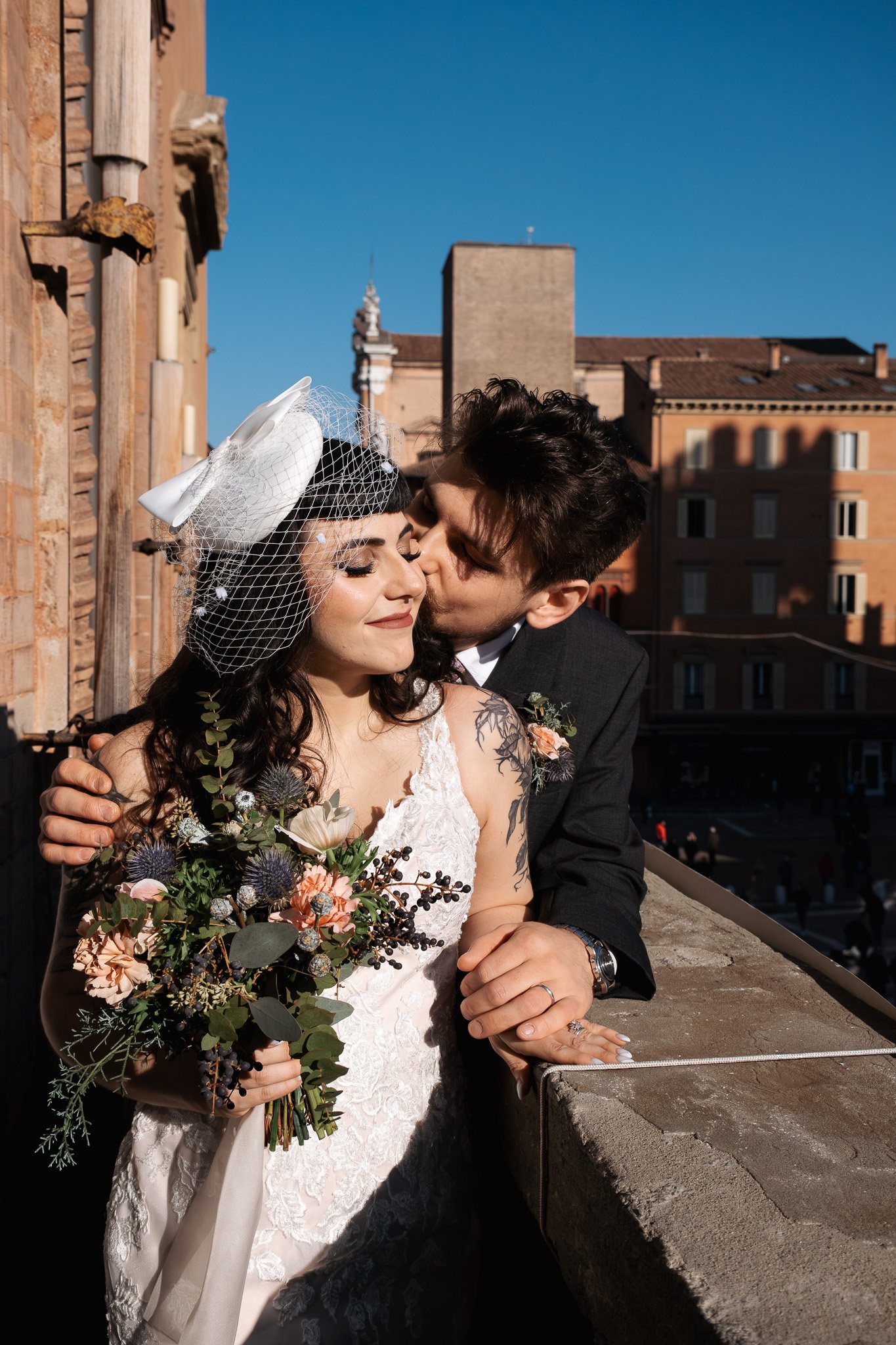 Their day was simple, intimate, and deeply personal. No big production, no pressure. Just the two of them, their closest friends, and the historic heart of Bologna as the backdrop.