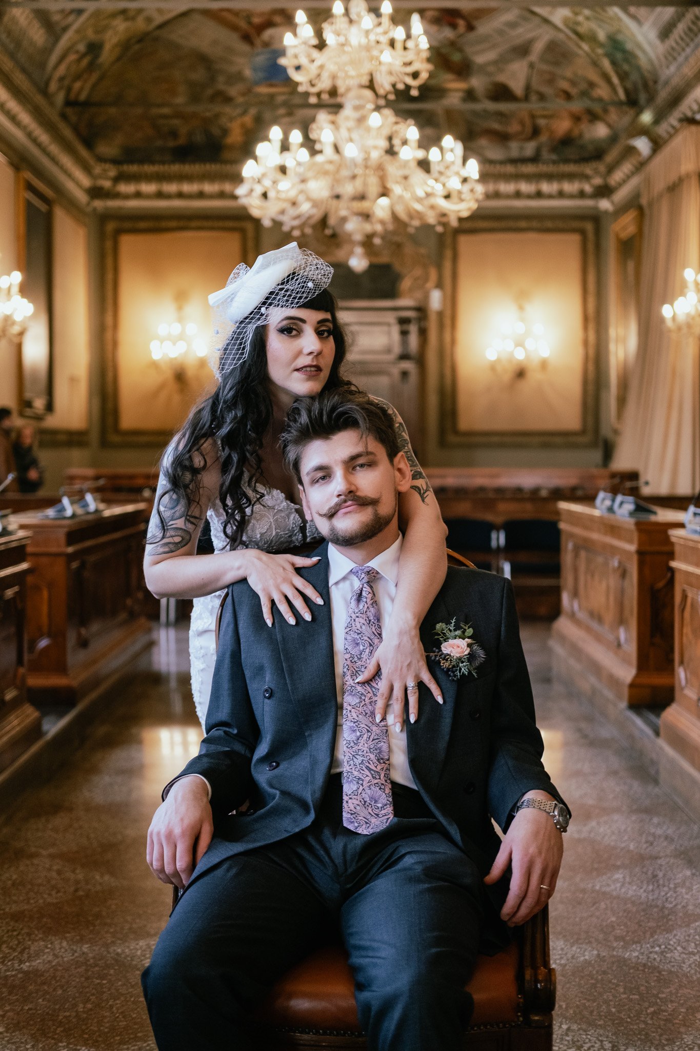 The ceremony took place at the Comune di Bologna, a beautiful historic building filled with chandeliers, warm tones, and centuries of stories. Civil weddings in Bologna have a unique atmosphere: elegant but never stiff, formal yet human.